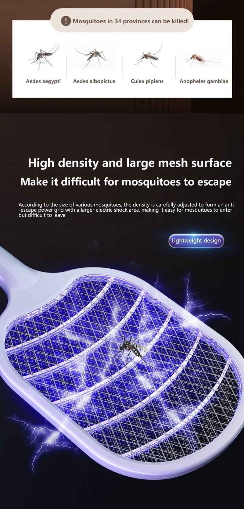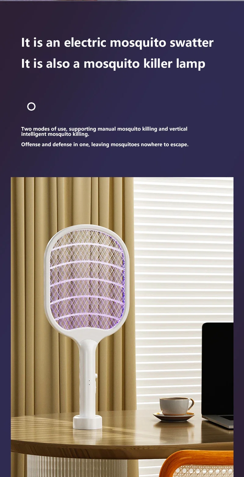 ✅ Dual mode design - manual electric mosquito swatter+automatic mosquito trap light, tapping during the day and silently killing mosquitoes at night, 24-hour protection!