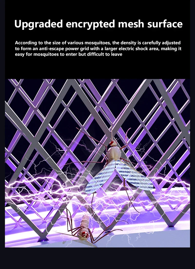 ✅ 3000V High Voltage Grid - Instantly kills mosquitoes and insects, with extremely high electric shock efficiency. Mosquitoes, flies, and moths can be killed at a touch!